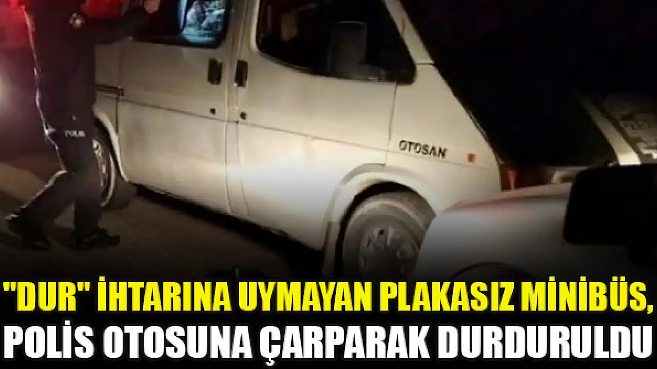 'Dur' ihtarına uymayan plakasız minibüs, polis otosuna çarparak durduruldu