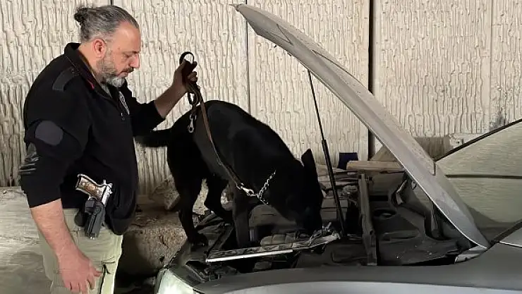 Narkotik köpeği "Tony"nin desteğiyle araçta arama yapan ekipler, tavan döşemesinin içinde bir miktar uyuşturucu ile esrarlı sigara ele geçirdi.