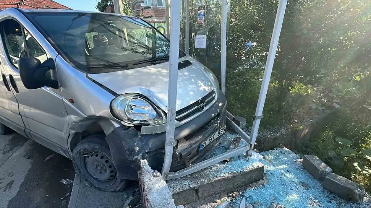Düzce'de otomobil ile çarpışan minibüs, otobüs durağına çarparak durabildi. Durakta kimsenin olmaması ise faciayı önledi.