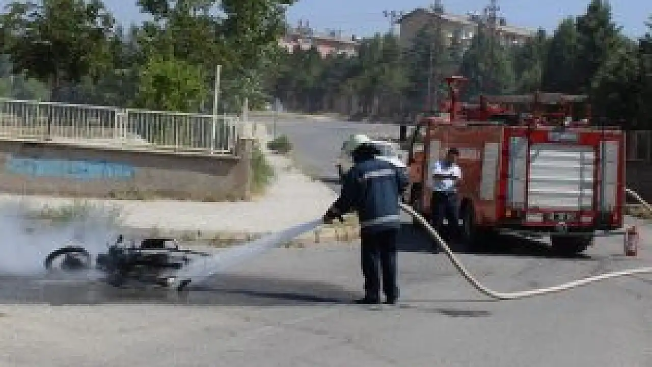Konya’nın Seydişehir ilçesinde bilinmeyen bir nedenle alev alan sahipsiz motosiklet itfaiyenin müdahalesi ile söndürüldü.