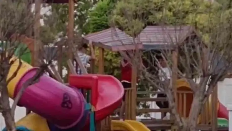 Aydın'ın Kuşadası ilçesinde bulunan bir çocuk parkına gelen 3 genç, oyun alanına zarar verip gitti.