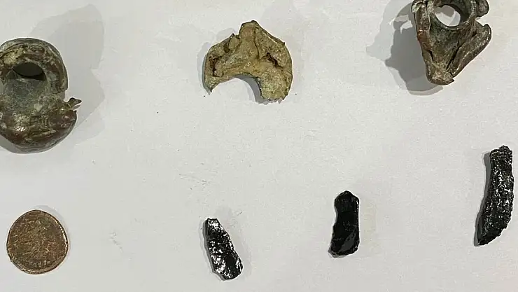 TUNCELİ'de şüphe üzerine durdurulan araçta yapılan aramada, 1 sikke ile 6 adet çeşitli ebatlarda tarihi obje ele geçirildi, 3 şüpheli gözaltına alındı.