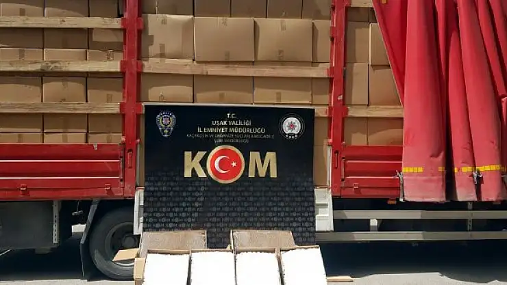 UŞAK'ta polis ekiplerince durdurulup, arama yapılan TIR'ın dorsesinde koliler içerisinde 8 milyon 320 bin adet kaçak sigara ele geçirdi, 1 kişi gözaltına alındı.