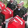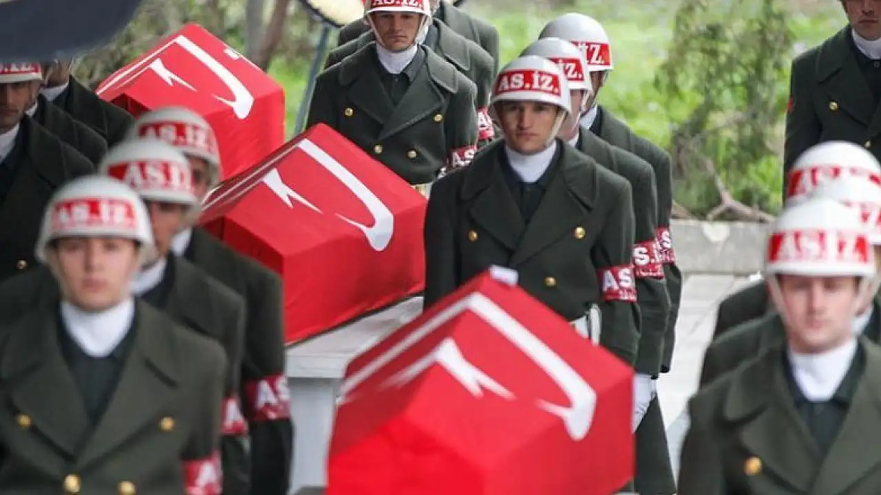 Kılınan cenaze namazının ardından pilotların Türk bayrağına sarılı tabutları, askeri merasim mangası tarafından bir süre omuzlarda taşındıktan sonra top aracına konuldu.