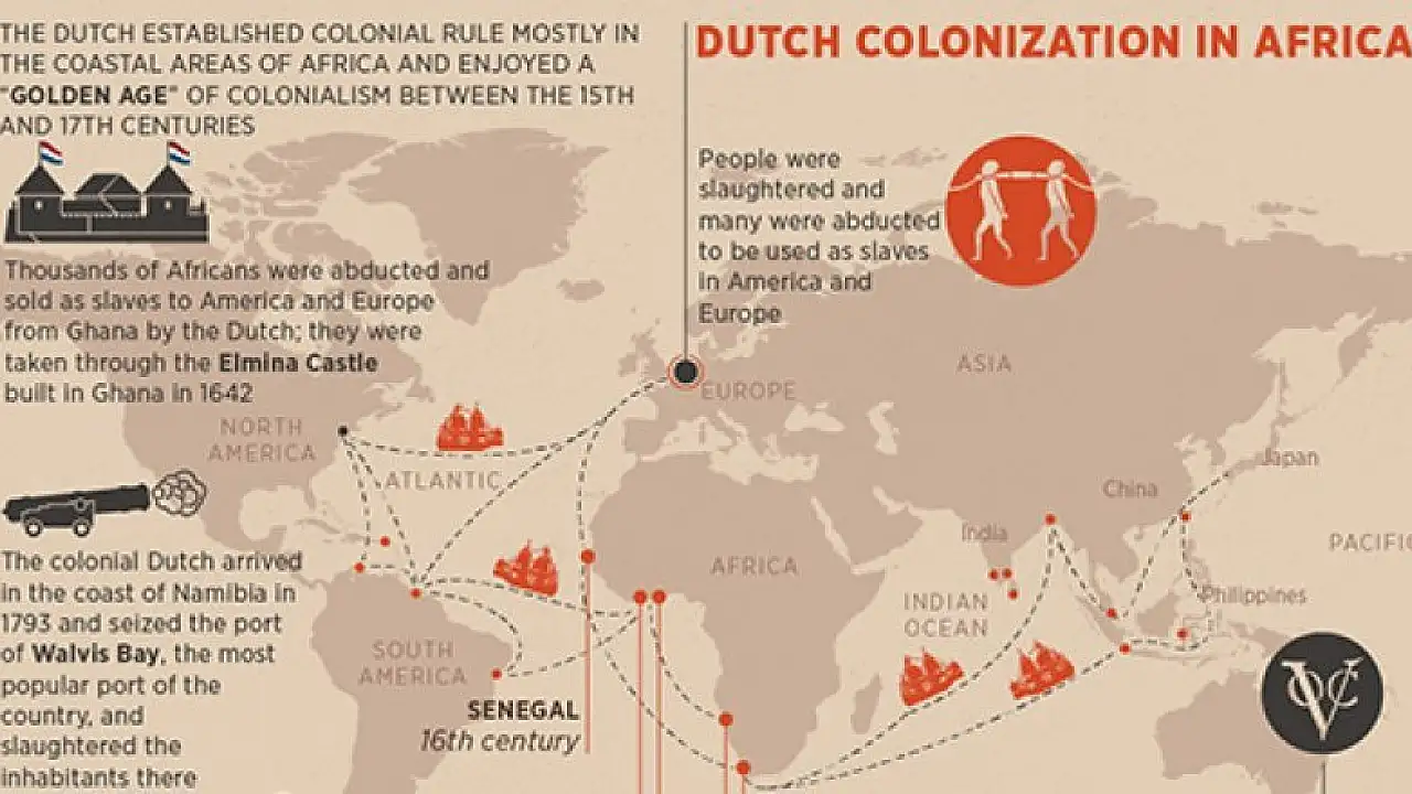 The Dutch established colonial rule mostly in the coastal areas of Africa and enjoyed a “golden age” of colonialism between the 15th and 17th centuries.