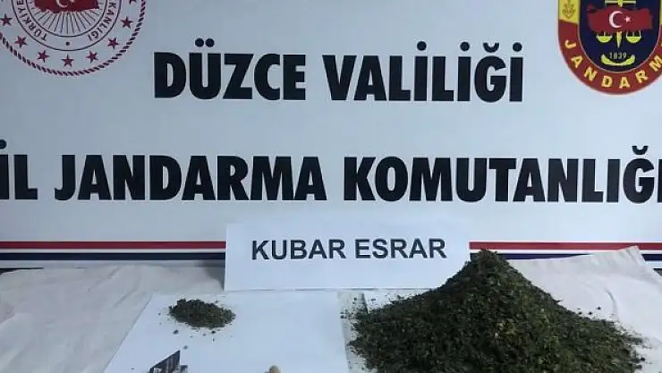 Jandarma ekipleri uyuşturucuya geçit vermiyor. Kaynaşlı'nın Üçköprü köyü D-100 karayolu üzerinde yapılan uygulamada durdurulan araçta B.B. isimli şahsın üzerinde yapılan aramada 5 gram kubar esrar maddesi ele geçirildi. Arama kararı ile şahsın, Düzce merkez ilçedeki ikametinde KOM Şube Müdürlüğü uyuşturucu madde arama köpeği ile yapılan aramada 300 gram kubar esrar maddesi ele geçirildi. Olayla ilgili olarak adli soruşturma başlatıldı.