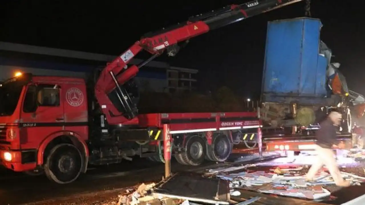 Karayolları ekipleri de kargo tırının dorsesinden yola saçılan malzemeleri toplamak için temizlik çalışması başlattı.