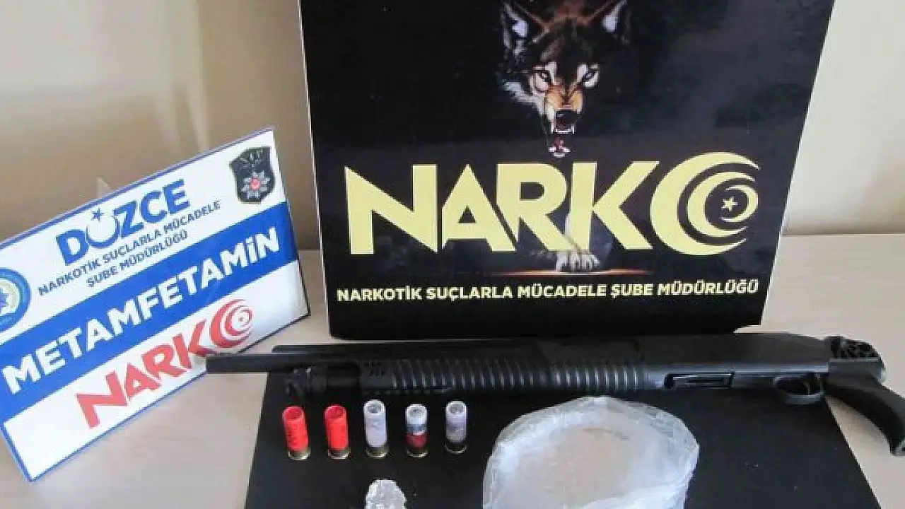 Narkotik Suçlarla Mücadele Şube Müdürlü ekiplerinin Cumhuriyet Başsavcılığı koordinesinde yürüttüğü çalışmada; Düzce'ye uyuşturucu madde getireceği tespiti edilen şüpheli A.Y. yapılan operasyonla yakalandı. A.Y.'nin üzerinde ve aracında yapılan aramada iki parça halinde toplam 150 gram Metamfetamin maddesi, ruhsatsız pompalı diye tabir edilen tüfek ve 5 adet fişek ele geçirildi. Uyuşturucu madde ticareti yapmak suçundan adli makamlara sevk edilen şahıs tutuklanarak cezaevine konuldu.