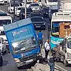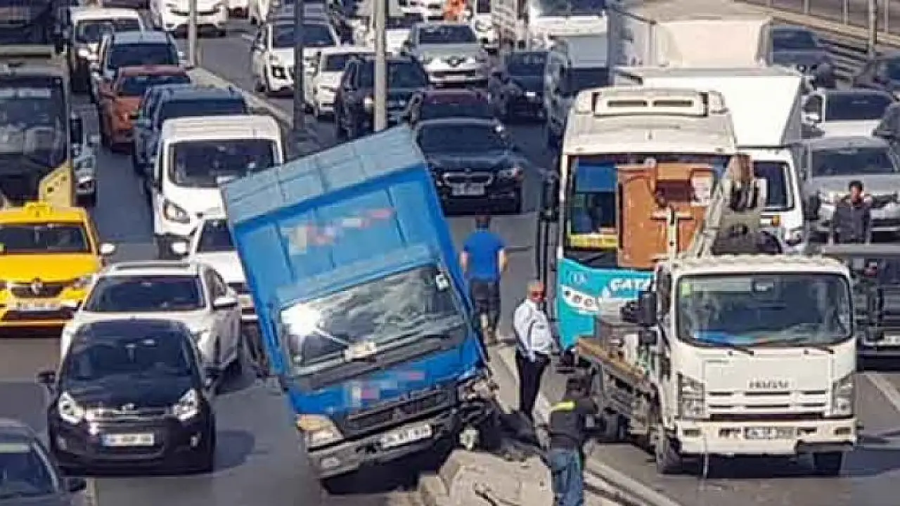 E-5 karayolu Yenibosna mevki'inde bir kargo firmasına ait kamyonet orta refüjde bulunan aydınlatma direğine çarptı. Devrilen direğin diğer araçlara çarpmaması faciayı önledi. E-5 Bakırköy istikametinde trafik durma noktasına geldi.