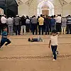 Teravih namazına 3 çocuğuyla geliyor