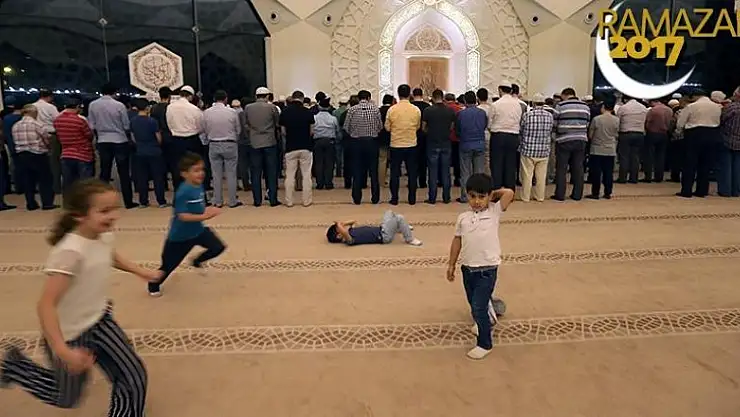 Ebeveynleri namaz kılıyor, çocuklar oyun oynuyor