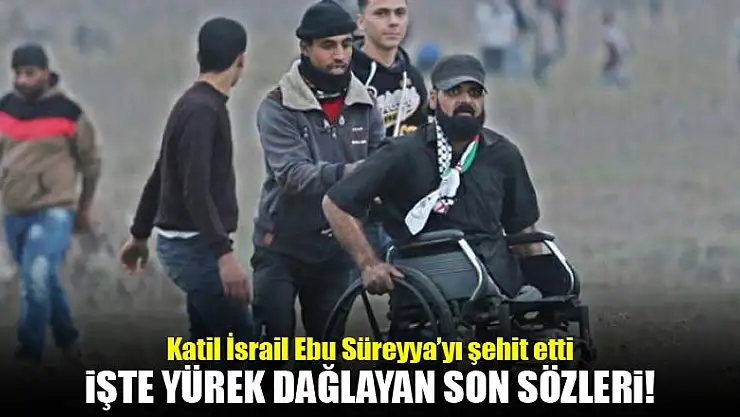 İsrail askerlerinin Gazze sınırındaki gösterilere müdahalesinde bugün şehit olan 2 kişiden biri engelli Ebu Süreyya'ydı. İsrail'in 2008 yılında düzenlediği saldırılarda iki bacağını kaybeden Ebu Süreyya, Kudüs'e destek gösterilerine katılanlar arasında yerini alanlardandı.