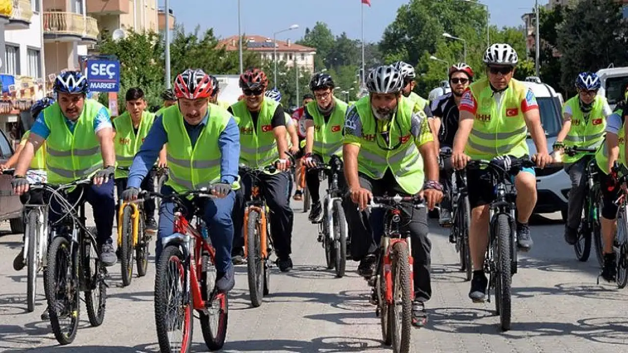 İHH arama kurtarma gönüllüsü 43 bisikletli, Osmanlı Devleti'nin kuruluşunda Söğüt'ten Domaniç'e uzanan 100 kilometrelik göç yolunda bisikletleriyle yol alıyor.