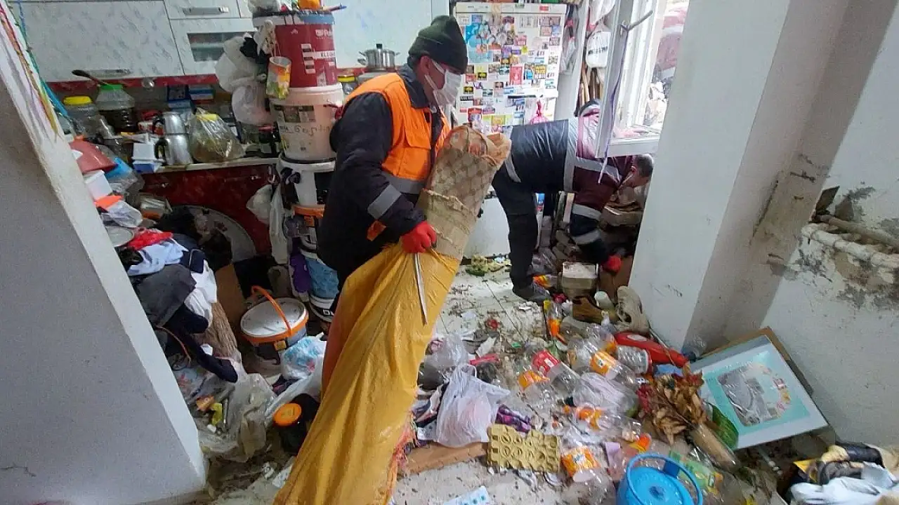 Zabıta ve Temizlik İşleri Müdürlüğü ekipleri, C.C'nin evine gitti. Evin tüm odalarının çöp yığınlarıyla dolu olduğunu tespit eden ekipler, temizlik çalışması başlattı. Evden, 2 gün süren çalışmalar sonucunda 10 kamyonet çöp çıkarıldı. Toplanan çöpler ve atıklar, Altınordu Belediyesi ekipleri tarafından kamyonlara yüklenip, imha edildi.