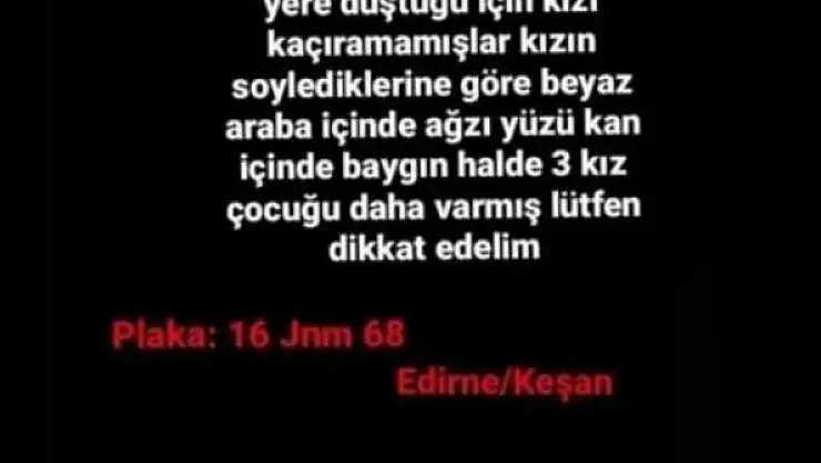 EDİRNE'nin Keşan ilçesinde sosyal medya hesaplarından yapılan, kent meydanında çarşaflı kadın kılığındaki organ mafyasının kız çocuklarını kaçırdığı yönünde paylaşımlar asılsız çıktı.