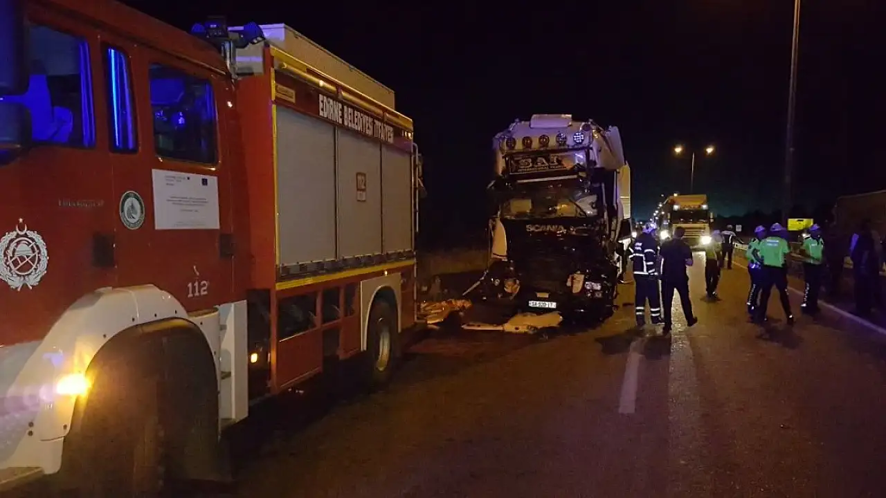 EDİRNE'de Kapıkule yolu üzerinde iki TIR'ın çarpışması sonucu meydana gelen kazada 1 kişi öldü.