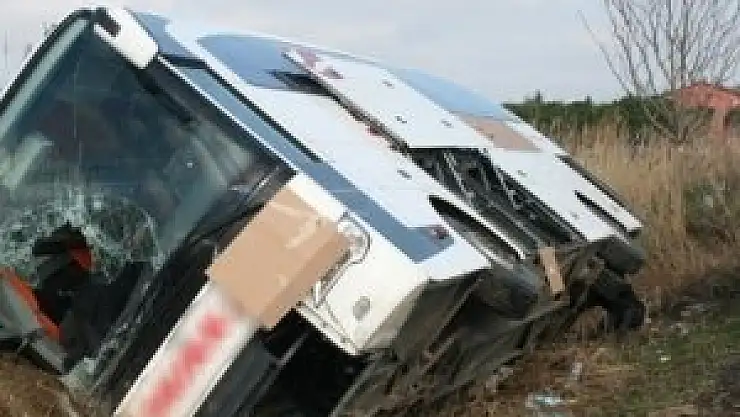 Edirne'de, Bulgaristan-Türkiye seferi yapan bir yolcu otobüsünün devrilmesi sonucu 10 kişi yaralandı.