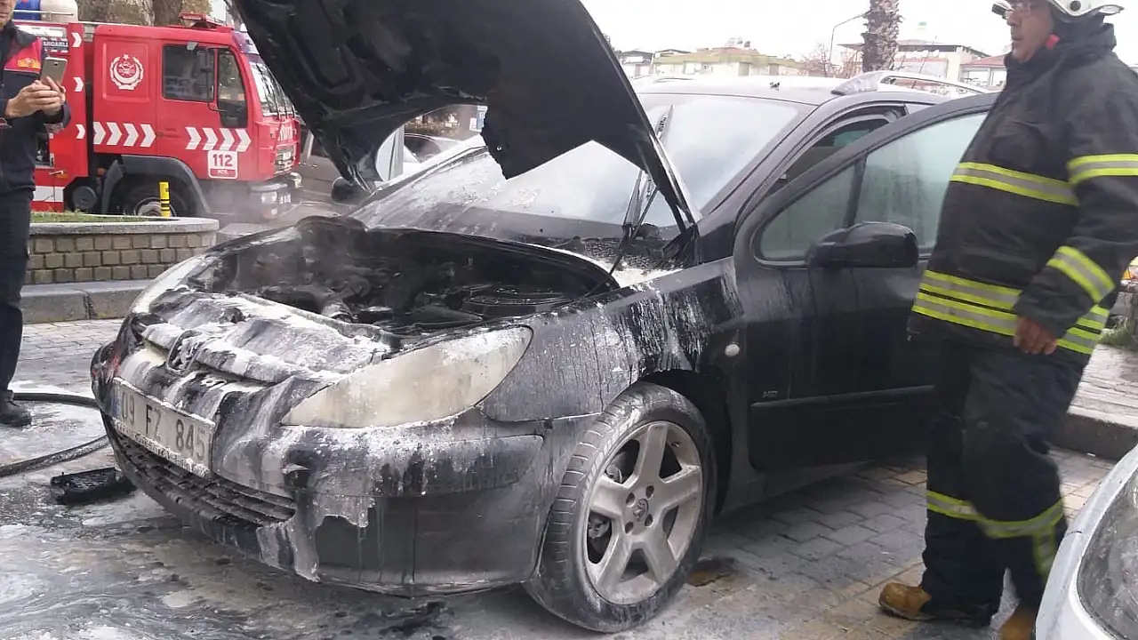 Aydın'ın Efeler ilçesinde park halindeki otomobilden bir anda dumanlar yükselmeye başladı. Yangının erken farkedilmesi facia ihtimalinin önüne geçerken, yangında araçta ağır maddi hasar meydana geldi.