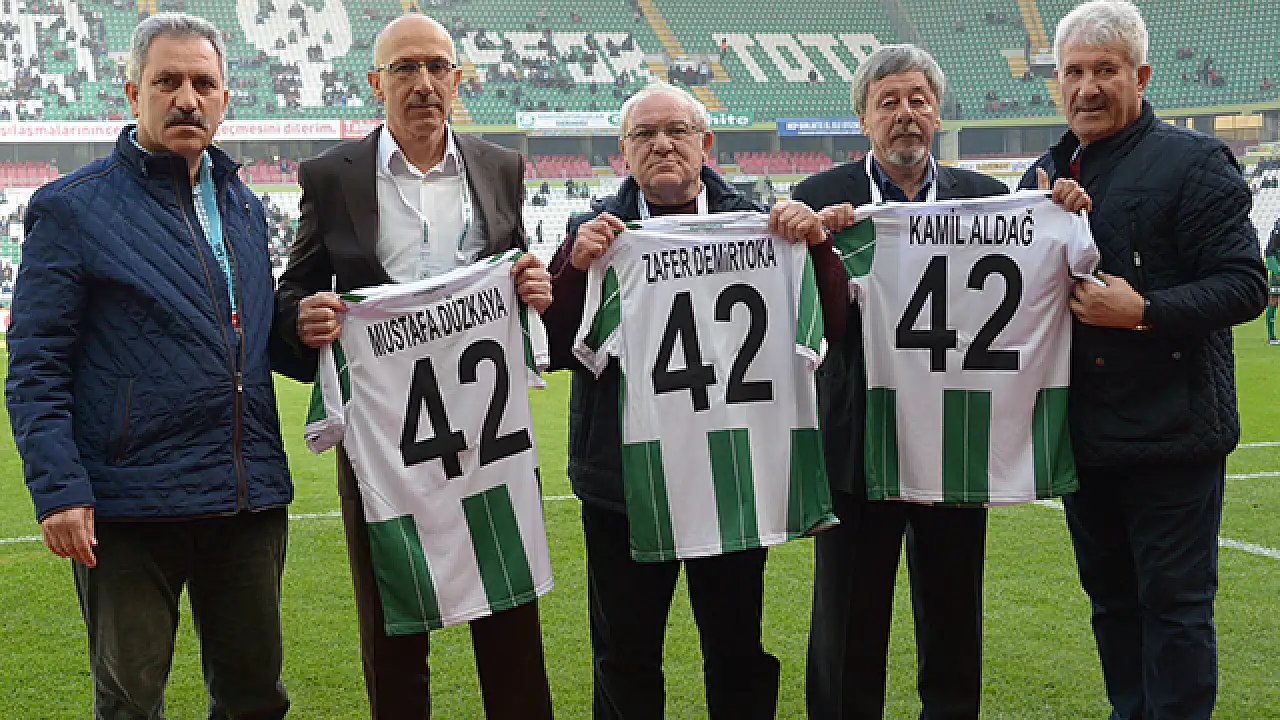 Konyaspor Kulüp Başkanı Fatih Yılmaz, eski futbolcular Kamil Aldağ, Zafer Demirtoka ve Mustafa Düzkaya’ya üzerlerinde isimlerinin yazılı olduğu 42 numaralı Konyaspor’umuzun formasını ve plaket takdim ederek hizmetlerinden dolayı teşekkür etti.