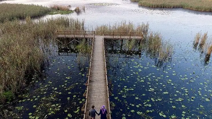 Göçmen kuşların mola verdiği sahalardan biri olan ve 35'i kalıcı olmak üzere yaklaşık 150 türde kuşa ev sahipliği yapan 764 hektar alandaki canlı hayatı, AA ekibince drone ile görüntülendi.