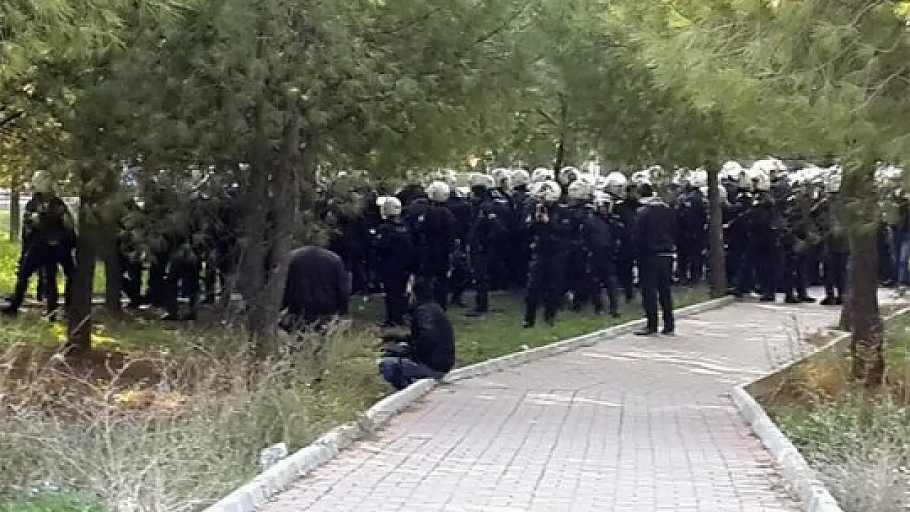 Edebiyat Fakültesi önünde karşıt görüşlü öğrencilerin toplandığı bilgisi üzerine, grupların karşılaşmaması amacıyla yerleşkeye çevik kuvvet ekipleri girdi.