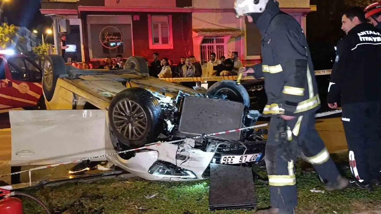 Antalya'da tali yoldan aşırı hızlı şekilde çıkan otomobil seyir halindeki başka bir araca çarparak takla attı.