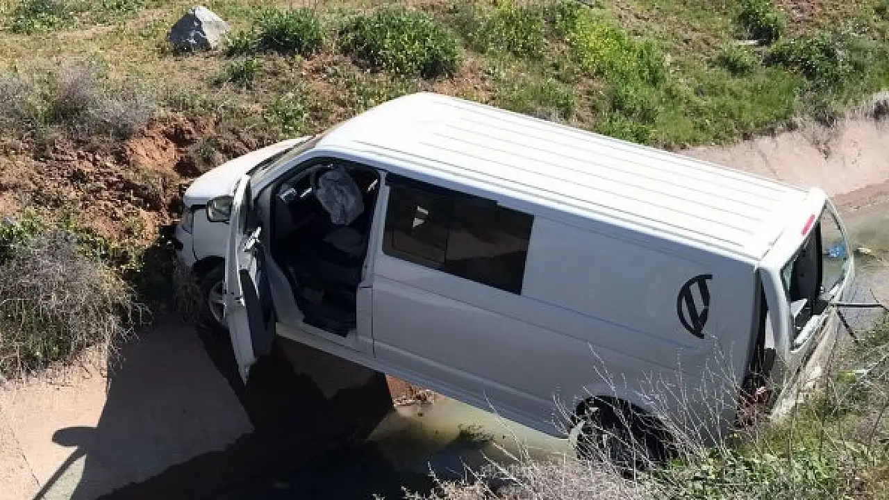 Ehliyetsiz sürücünün kullandığı minibüs sulama kanalına uçtu: 3 yaralı