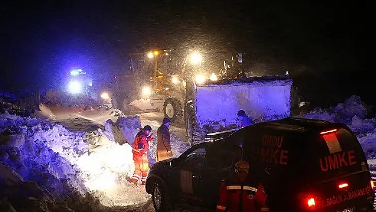 İlçeden yaklaşık 40 kilometre uzaklıktaki mahalleye gitmek üzere dün yola çıkan ekipler, kar yağışı sonrası yolun kapanması nedeniyle hastaya ulaşamayarak yolda mahsur kaldı.