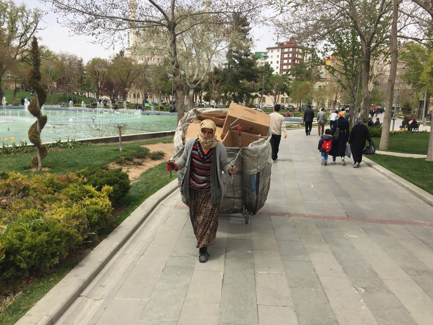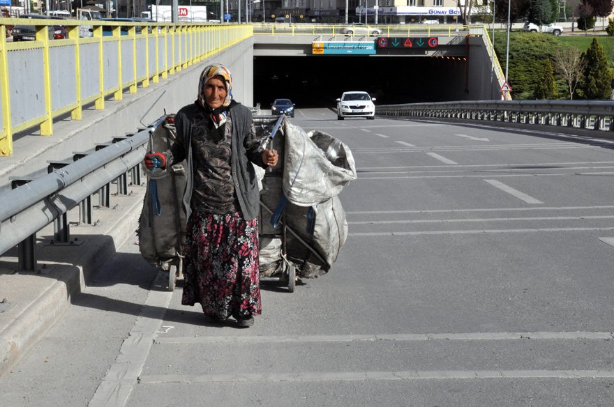 "Biz hırsızlık, dilenme nedir bilmeyiz. Yapana da çok kızarız. Ekmeğinin peşinde olan biriyim. Topladıklarımızı satıp karnımızı doyurursak yeter. Başka ne isteyelim. Alnımın teriyle, kimseye muhtaç olmadan yaşıyorum. Aç da susuz da kalsam kimseye 'Bana bir parça ekmek ver' demem. Ekmeğim olursa yerim, olmazsa Allah'a şükreder yatarım. Bazen bizi 'Utanmadan kafalarını çöplerin içine sokuyorlar' diyerek küçümsüyorlar. Hırsızlık, dilencilik yapmıyorum. Helalinden kazanıp, yiyorum. Halimizde hor görülecek bir durum yok. Fakirim ama çok şükür karnımı doyuruyorum. Hayatımdan memnunum. Halime şükretmezsem Allah'a hesabını veremem. Rabbim ne verdiyse çok şükür. Kocam iyi olsun, başka bir şey istemem."