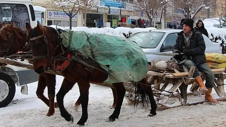 Ekmeğini atlı kızakla kazanıyor