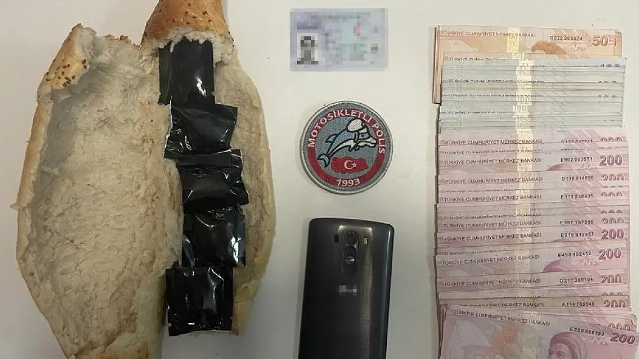 Şahsın ekmek olduğunu söylemesi üzerine poşeti kontrol eden polis ekiplerinin incelemesinde, ekmeklerden birinin içerisine gizlenmiş 5 parça satışa hazır esrar maddesi ele geçirildi. Motosiklet sürücüsü diğer şahsın üstünde ise uyuşturucu ticaretinde kullanılan cep telefonu ile uyuşturucu madde ticaretinden elde edilen 10 bin 450 lira ele geçirildi.