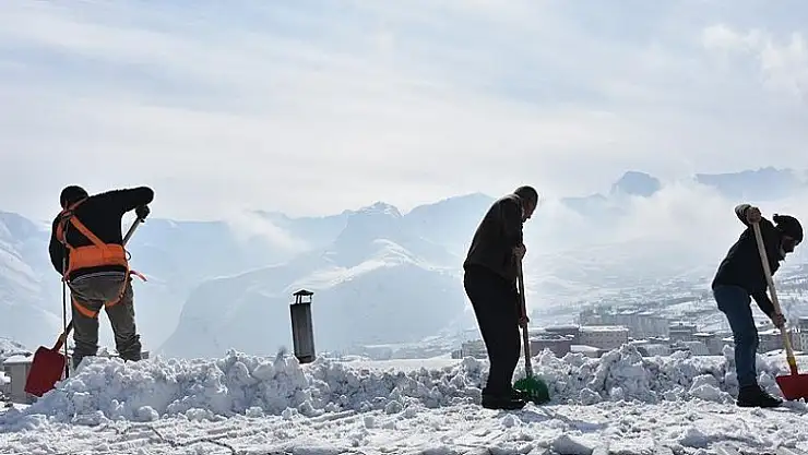 Hakkari'de bazı vatandaşlar, yoğun kar yağışı sonucu ev ve iş yerlerinin çatılarında biriken karı temizleyerek ekmek parasını kazanıyor.