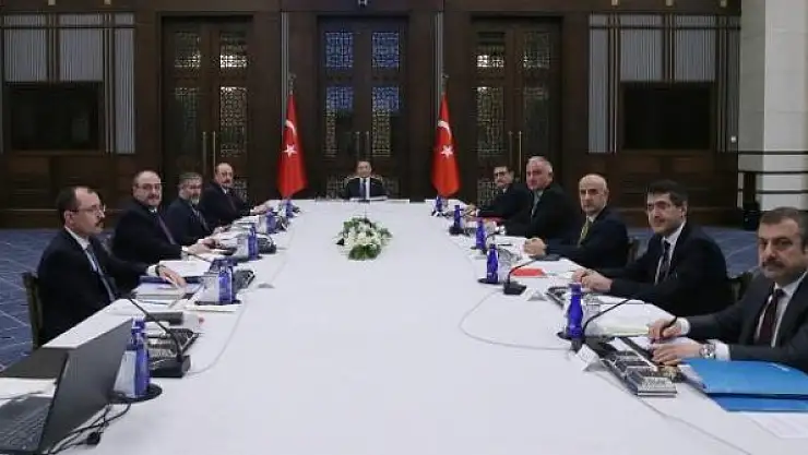 Cumhurbaşkanlığı Külliyesi'ndeki toplantıda, ekonomide son dönemde yaşanan gelişmeler ile enflasyonla mücadelede atılacak adımların ele alınması bekleniyor.