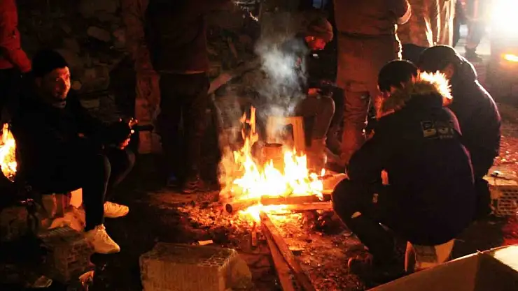 Eksi 9 derecede enkaz bölgesinde ateş başında bekliyorlar