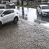 Muğla'nın Bodrum ilçesinde, sürücüsünün el frenini çekmeyi unuttuğu otomobil, hareket ederek, yoldan geçen başka bir araçla çarpıştı. O anlar güvenlik kamerasına yansıdı.