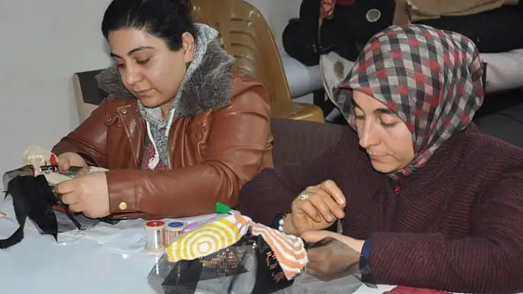 Adıyaman Valiliği ve Halk Eğitimi Merkezince Sosyal Destek Programı (SODES) kapsamında açılan atölyede 6 aydır eğitim alan kadınlar, ürettikleri çantaları tel kırma yöntemiyle ilmek ilmek süslüyor.