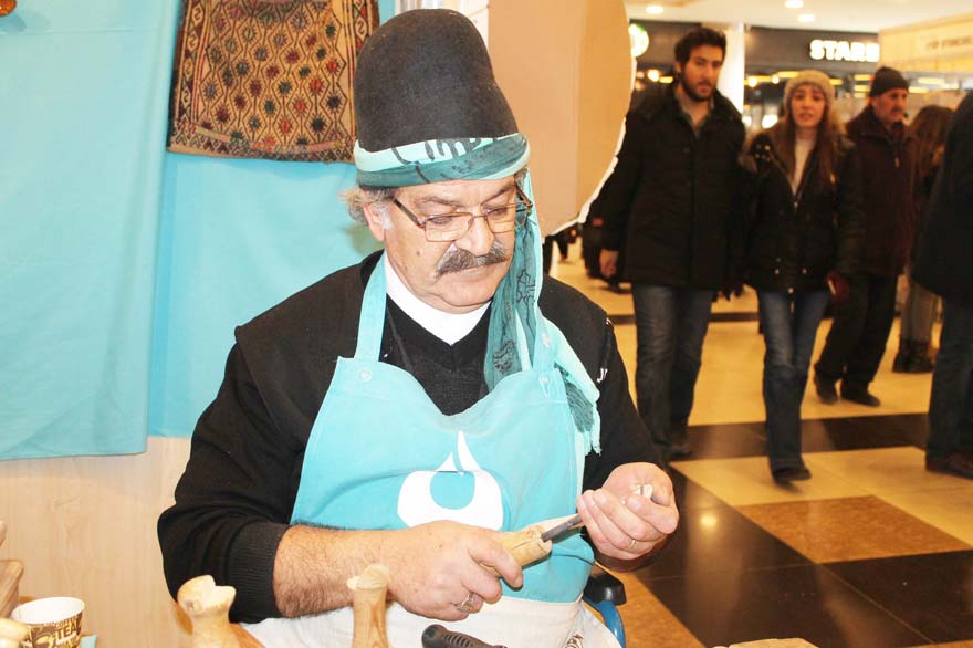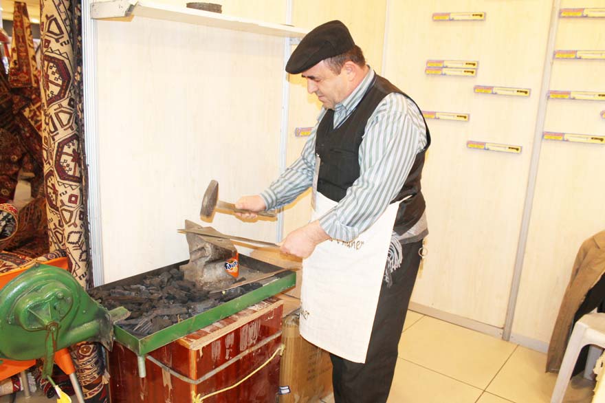 Ürünlerin el emeği olduğunu vurgulayan bıçak ustası Erol Özkan ise “Denizli Yatağan’dan geliyorum. 25 yıl devletin birimlerinde çalıştım. Bu işin içinde büyüdüğümüz için Ehl-i Hüner sayesinde değişik illere gidiyoruz. Bu bizim el emeğimiz. Unutulmaya yüz tutmuş ürünlerimizi Çin malı ürünlere karşı ayakta tutmalıyız. Çin ürünleri bizim el sanatlarımızı yıprattı. Biz hala ayaktayız mücadele ediyoruz. Gelecek nesillere örs, çekiçi anlatarak unutulmamasını sağlayacağız. Kendi kullandığımız malı başkaları da güvenle kullansın diye çalışıyoruz. Konyalının ilgisinden de memnunuz. Böyle etkinlikler olması gerekiyor. Hile olmadan bileğimizin emeğiyle yapıyoruz. Bıçağın nasıl yapıldığını örs, çekiç ne olduğunu gösteriyoruz ”dedi.
