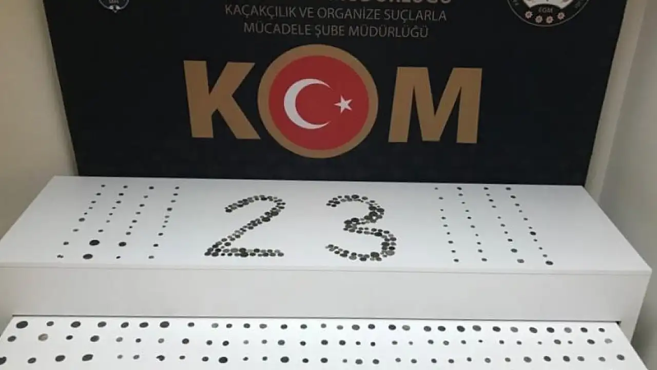 İl Emniyet Müdürlüğü Kaçakçılık ve Organize Suçlarla Mücadele (KOM) Şube Müdürlüğü ekipleri, R.K.'nin (41) elindeki tarihi sikkeleri satmaya çalıştığı bilgisine ulaştı. R.K.'yi takibe alan ekipler, şüpheliyi suçüstü yakalayarak gözaltına aldı. Büyük Selçuklu ve sonrası döneme ait olduğu değerlendirilen 470 sikkeye el konuldu.