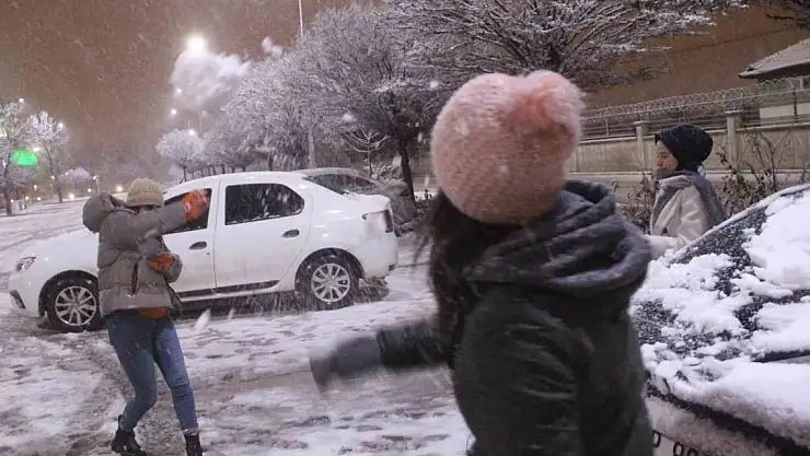 Elazığ'da etkisini gösteren kar, şehri beyaza bürüdü. Uzun süredir bu anı bekleyen vatandaşlar, kartopu oynayarak ve kar altında yürüyerek keyfini çıkardı.