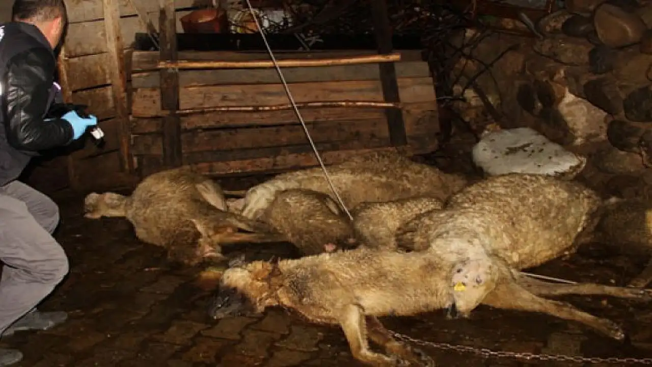 Polis ekipleri, ağılda inceleme yaparak tutanak tuttu.