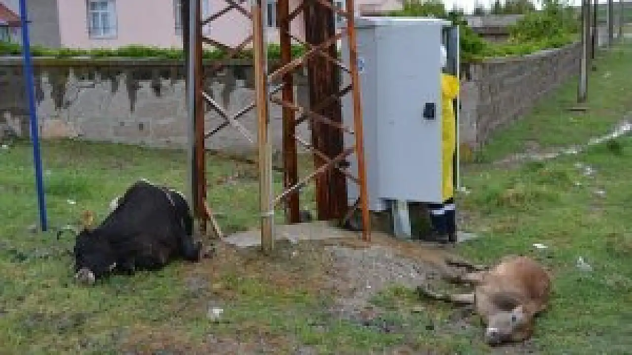 Konya'nın Kulu ilçesinde yağmur yağışı sırasında direkteki elektrik akımına kapılan 2 büyükbaş hayvan telef oldu.