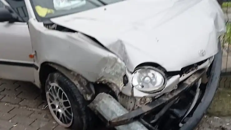 Balıkesir'in Bandırma İlçesinde yağış sebebiyle kayganlaşan yolda duramayan araç elektrik direğine çarparak durabildi.