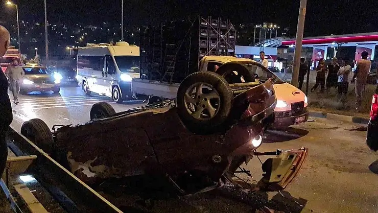 Elektrik direğine çarpan araç takla attı