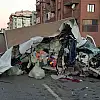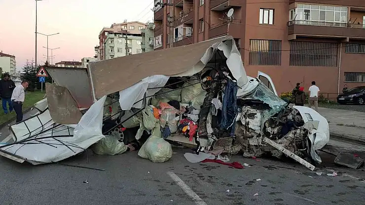 Samsun'da beton elektrik direğine çarparak hurdaya dönen kamyonette bulunan 1 kişi hayatını kaybetti, 1 kişi yaralandı.