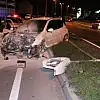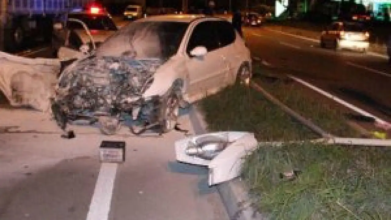 Zonguldak'ın Ereğli ilçesinde, sürücüsünün direksiyon hakimiyetini kaybettiği otomobil orta refüjdeki elektrik direğine çarparak hurdaya döndü.