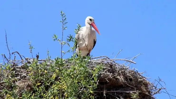 Baharın müjdecisi kabul edilen leylekler, yuvalarına dönüşleriyle köy ahalisini yeniden sevindirdi.