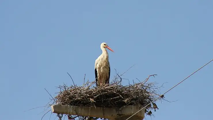 Elektrik direkleri üzerindeki leylek yuvaları ilgi odağı