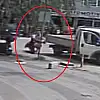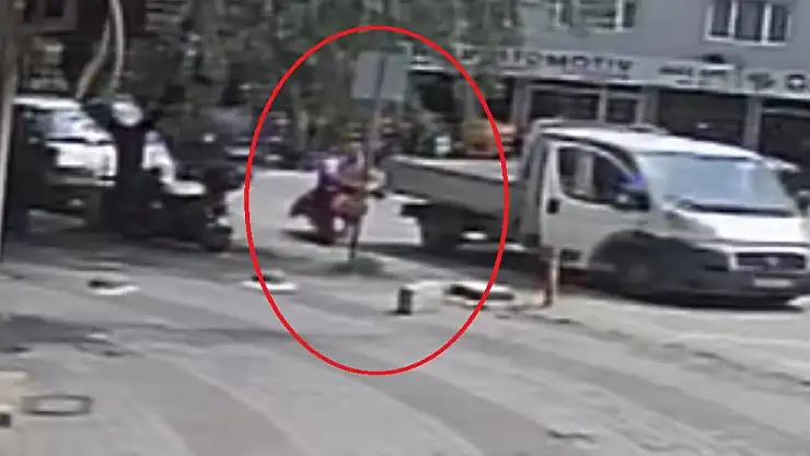 BURSA'da, kamyonete çarpıp devrilen elektrikli bisikletin sürücüsü Suriyeli Ahmet Abdullatif (69) ile eşi Fatma (26) ve 1 yaşındaki kızları Zehra Abdullatif yaralandı. Kaza anı, güvenlik kamerasına yansıdı.