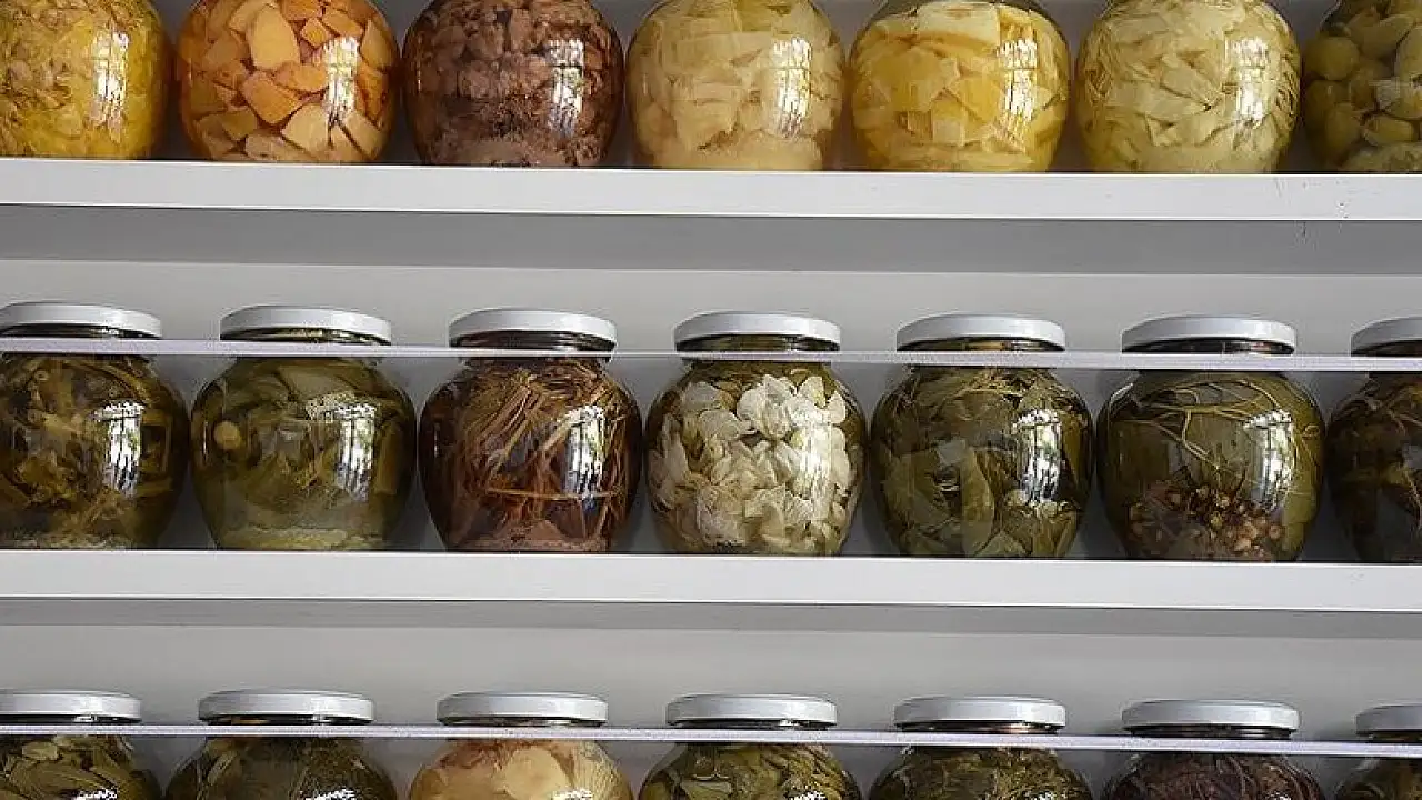Afyonkarahisar'ın Dinar ilçesinde emekli kimya mühendisi Mustafa Koca, karaca ağaç, horoz ibiği kökü, söğüt kabuğu, aspir, hindiba ve laden gülü gibi ürünlerden 498 çeşit "probiyotik turşu" hazırlıyor.