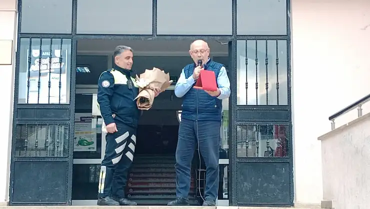 KOCAELİ'nin Gölcük ilçesinde emekli olan trafik polisi Sezgin Beşer için önünde görev yaptığı Piri Reis İlkokulu'nda tören düzenlenip çiçek ve plaket verildi.